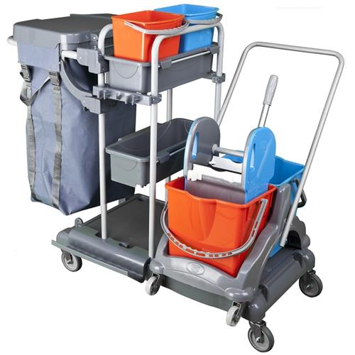 • 25 lt.lik kirli ve temiz su kovalı paspas arabası, brandalı ve plastik  kapaklı çöp veya kirli toplama kısmı mevcuttur.