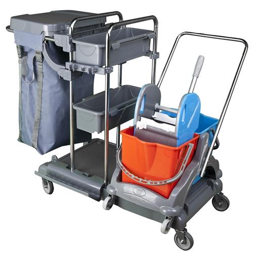 - 25 lt.lik kirli ve temiz su kovalı paspas arabası, brandalı ve plastik kapaklı çöp veya kirli toplama kısmı mevcuttur.
