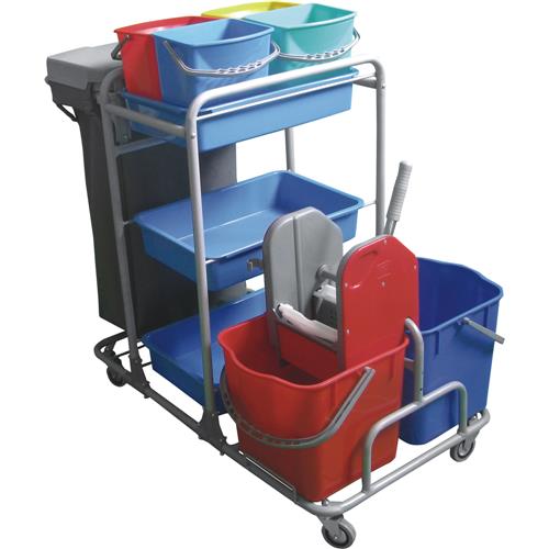 25 lt.lik kirli-temiz su kovalı preslidir ve brandalı ve plastik kapaklı çöp veya kirli toplama kısmı mevcuttur.