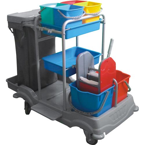 Ürün Açıklaması | Zemin temizlik uygulamaları için çift kovalı presli, brandalı, 4 kovalı kat arabası.