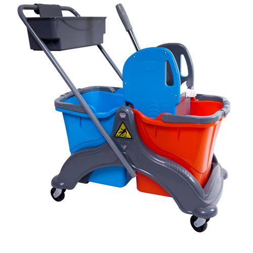 | Çift Kovalı Temizlik Arabası, plastik gövdeli, plastik presli, mavi ve kırmızı renk seçenekleri olan, bir temizlik aracıdır. Sahip olduğu çift kova özelliği sayesinde tüm zeminlerin, ıslak ve nemli temizliğinin bir arada yapılabilmesine olanak sağlamış olur. TSE ve ISO-9001 kalite belgelerine sahip bir üründür. Çift bölmesi sayesinde, değişik temizlik ürünlerinin kullanımı konusunda kolaylık sağlar ve bütün moplar ile kolaylıkla kullanılabilecek bir yapıya sahiptir. Zemin üzerinde rahatlıkla hareket ettirilebilir. Otel, hastane, restaurant, spor salonları, plaza gibi geniş yüzey alanlarına sahip kurum ve kuruluşlar için tavsiye edilir.