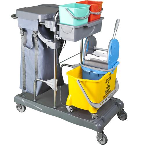 • Hünerli çift kovalı mimoza presli paspas arabası,brandalı ve plastik kapaklı çöp veya kirli toplama kısmı mevcuttur.