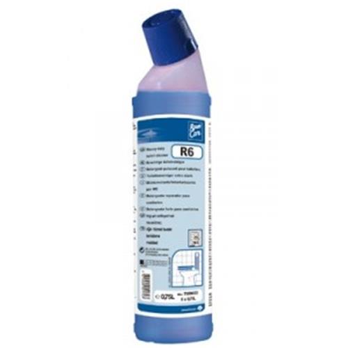 Klozet/tuvalet giderinin sifonunu çekin. R6 şişesini, klozetin tuvalet giderinin kıvrımlı kenarlarının içine doğrultarak çeperi boyunca sıkın. En az 5 dakika etki süresi olarak bekleyin. Gerekirse fırça kullanın. Sifonu çekerek durulayın. Önemli not: